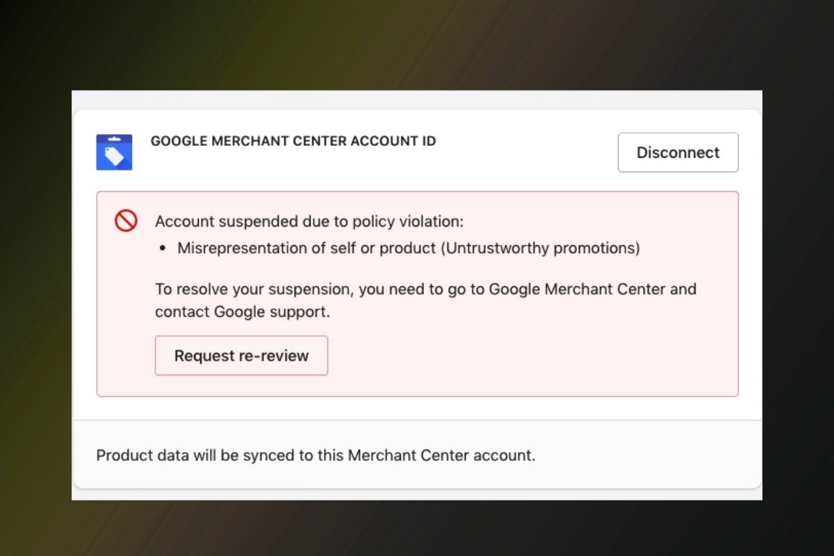 The dreaded Merchant Center suspension usually stems from misrepresentation. This means Google doesn't find your site "trustworthy" enough yet.
